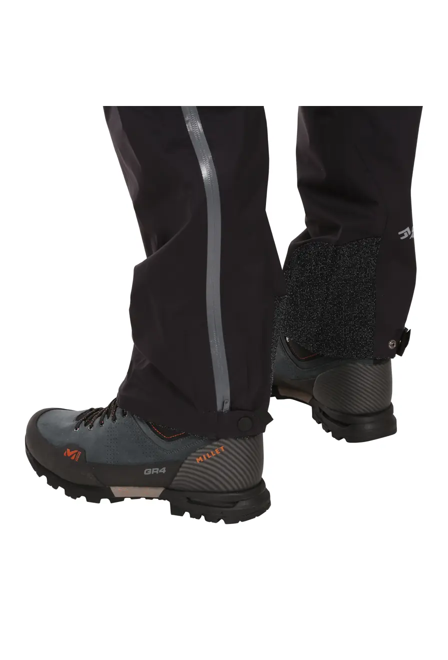 The lower edge of the legs has an adjustable aperture and a hook for securing them to your boots, so they’ll stay in place even in challenging terrain. All seams are 100% taped to keep you dry in any situation.