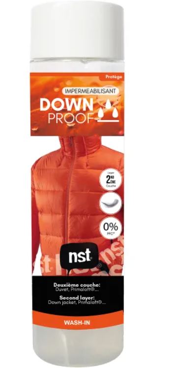 Down Proof est un produit imperméabilisant pour tous les vêtements avec duvet qui nécessitent un renouvellement du traitement déperlant. Vous restez à l’abri de l’humidité dans vos vêtements.
