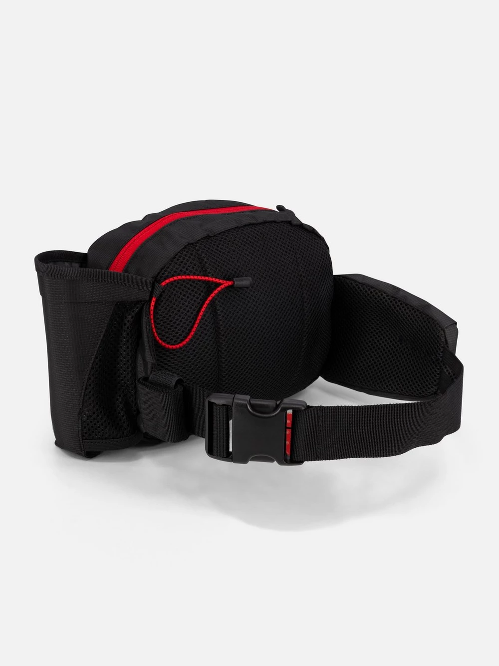 Hip pack with storage pocket and side bottle holder.