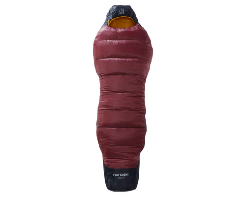 Oscar -2° Curve is a very light sleeping bag considering the level of thermal protection it provides. It is updated with the Curve shape by Nordisk. The Shark-fin foot box has also been updated and now features the envelope ventilation for easy nightly thermal regulation. The bag has an extremely soft and comfy feel due to the choice of premium materials like ultra-fine 7D Rip-stop Nylon and ECO friendly 100% recycled synthetic filling made from recycled PET bottles. The 3D shaped hood provides added warmth on a cold night.