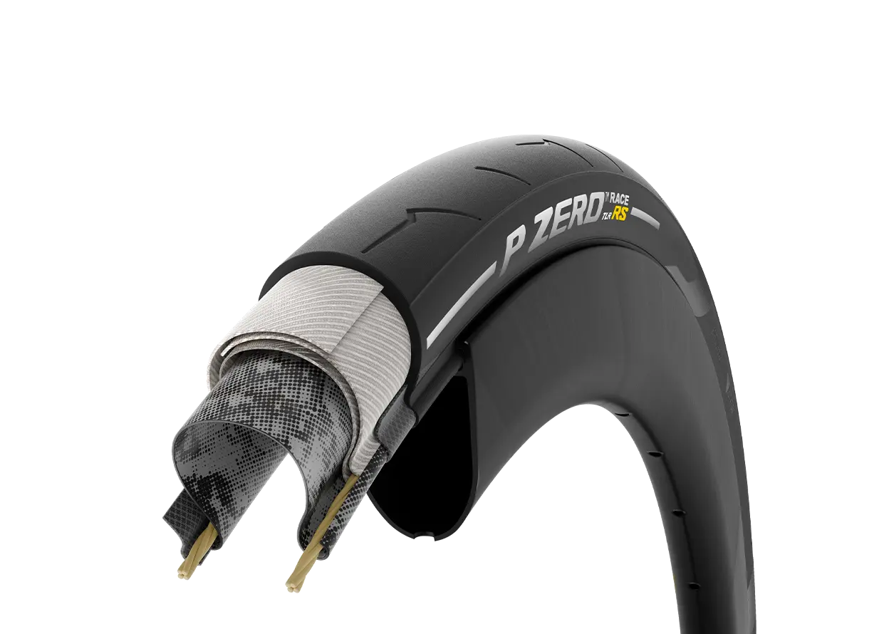 The P ZERO™ Race TLR RS represents the latest addition to the range of P ZERO™ Race road racing tires, made in Italy. It has been developed in collaboration with professional athletes from their World Tour teams to deliver superior speed and grip performance compared to any other tire they have created. This achievement is made possible by the new SmartEVO² compound, formulated with the know-how and latest materials used in Motorsport, ensuring further improvement in grip and handling on both dry and wet surfaces. Additionally, they have lightened the patented SpeedCORE™ structure, featuring a thin, hermetic layer of rubber compound enriched with aramid particles. The combination of these factors has made it possible to create a high-performance tire that is even faster for competitors, but also for those who wish to benefit from the same tech as the pros.