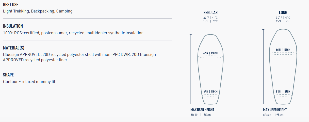 Constructed with Revive™ Loft synthetic insulation—made from 100% post-consumer recycled polyester—the bag stays warm even when wet. Strategic insulation placement boosts core warmth, while the durable outer shell and moisture-resistant lining help regulate internal temperature and manage condensation.