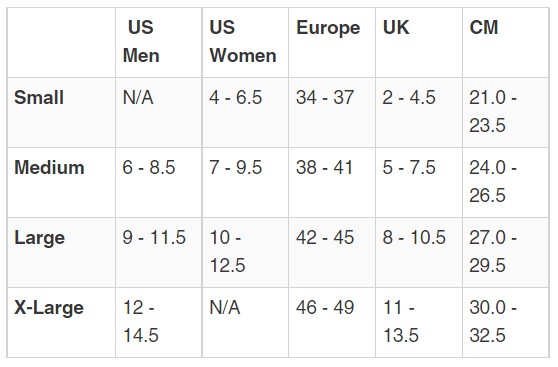 Sizes: S: 34-37; M: 38-41; L: 42-45; XL: 46-49