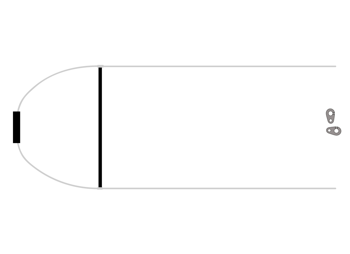Le premier barreau est équipé d’une cale de centrage amovible qui permet d’attraper l’accélérateur avec un pieds et de donner une premiere course sur le débatement d’accélération de la voile.